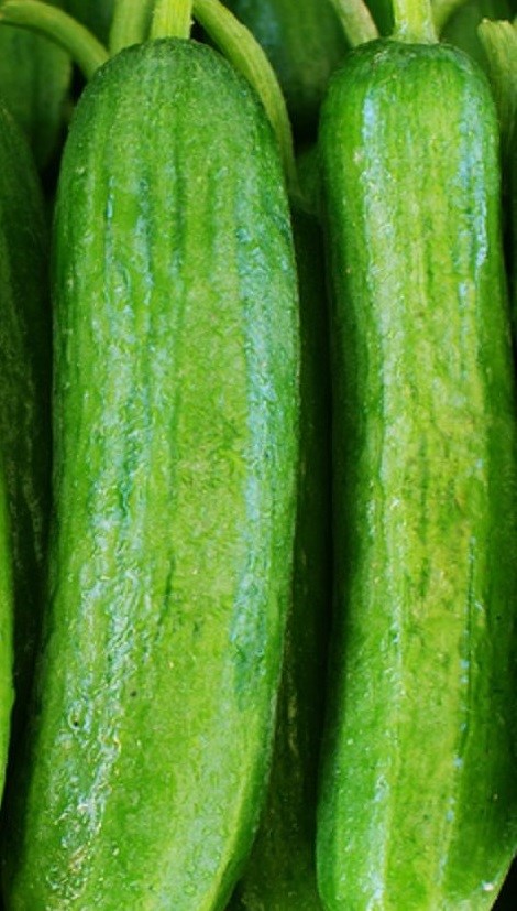 These Mideast type cucumbers have a very thin skin, absolutely no bitterness, are mild, productive over a long season, one of the earliest to produce, and should go until a frost. In short, they are one of the best all-around cucumbers available. Pick them when they are about five or six inches long for best flavour and texture.