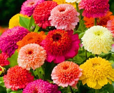 A vibrant mix of uniquely textured blooms, sure to create interest and dimension in your garden or in a vase! Scabiosa Flowered Zinnias bloom in the summer, thriving in full sun and warm weather. Excellent cut flower.