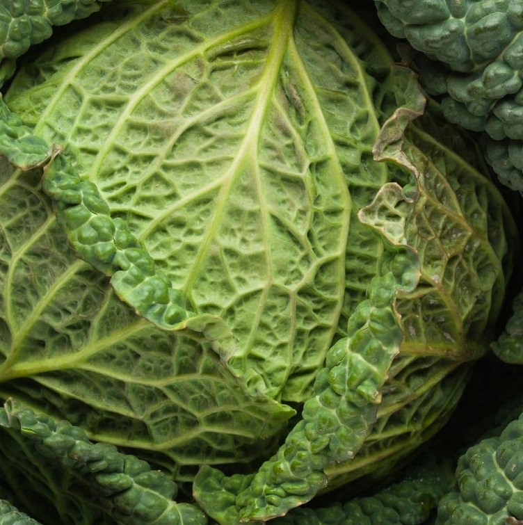 Leaf vegetable. Large round heads to 20cm or 2.5kg with grey/green crinkled leaves. Great both raw and cooked. Mild flavour.