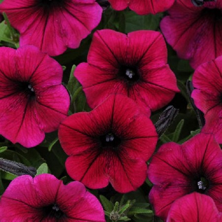 Shock Wave petunias are heavy flowering, low maintenance, and tolerant of heat and humidity. Shock Wave Deep Purple's 1.5-2 inch ultraviolet-to-fuchsia blooms are outstanding in beds, borders, containers for eye-catching colour. Plants grow 7-10 inches tall and up to 3.5 feet wide, bounce back quickly from rain.