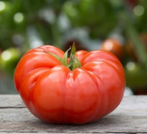 This red 'beefsteak' variety is not only attractive and unusual, but also very tasty and has a good texture. The vigorous plants give a good yield of ribbed fruits, usually weighing in at around 350gm approx. each.