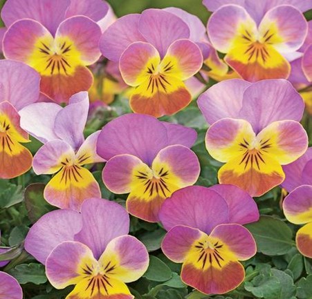 Pink and maroon tipped petals surround a bright yellow centre streaked with distinctive black markings. Rose Antique are hybrid pansies that are heat tolerant, but also have strong overwintering ability. Masses of flowers appear atop short plants that only grow 15-25cm tall. This is a good candidate for containers or edging, and it looks great around the edges of raised vegetable beds. The flowers are edible, and are sensational if they are candied before adding to fancy desserts.
