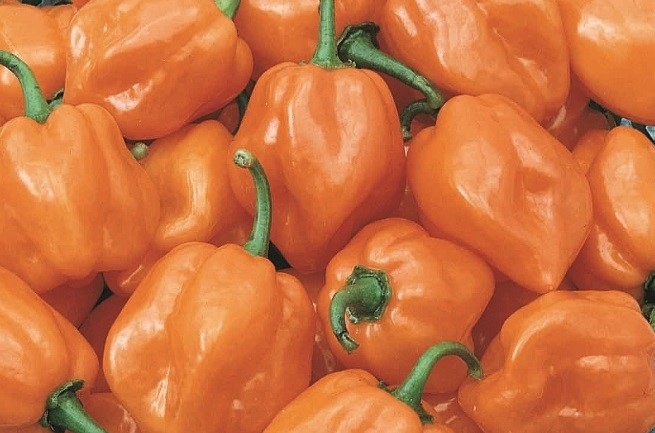 Habanero peppers may be small but they are also fiery and are among the hottest chilli peppers that you can get. With small tapering fruits 2-4cm long, these fruits start out green and turn to pale orange when ripe.