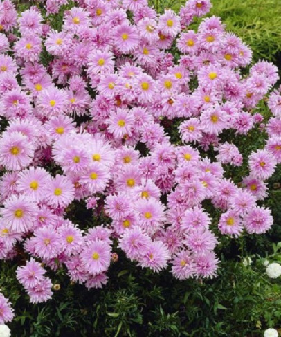 Another huge ball shaped Aster complementing Candyfloss. Positively compelling and often mistaken for Chrysanthemums. Asters are a traditional and popular cut flower, blooming from mid to late summer through into autumn. Some Asters are naturally compact, others are taller and benefit from staking. Full Sun.