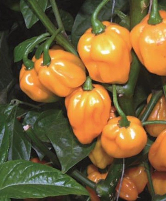 A large, bright-yellow Scotch Bonnet with extreme heat and fruity flavour. Large (6cm long) fruits turning green to yellow. Plant grows to 1m high.
