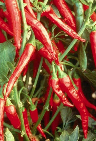 One of the classic and best-known varieties of chilli. Perfect for eating fresh, cooking with, drying or for making sauces. The 15 cm long fruits are pencil-thick and wrinkled; fruits can be harvested green or allowed to mature to a rich red colour. The compact but bushy plant grows to around 90 cm tall with a similar spread. Heat approximately 30,000 - 50,000 SHUs.