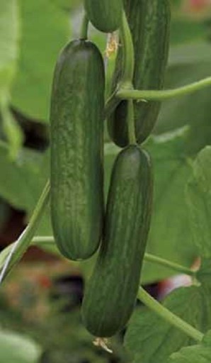 Is an all-female cucumber variety. It is a powdery mildew resistant variety, which when picked regularly produces lots of medium size fruits of 15-18cm long. The cucumbers are slightly ribbed, cylindrical and dark green. Harvesting time will depend on sowing time and growing conditions.