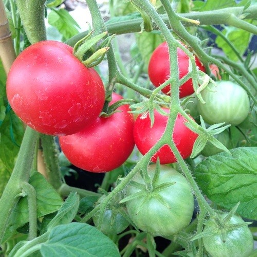 A heavy crop of salad type tomatoes with a lovely sweet flavour. The tomatoes are bright red, round with a smooth skin and are perfect for salads or cooking.