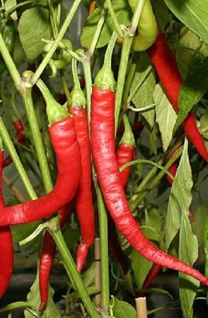This is a centuries old Turkish heirloom chilli pepper. Each plant will produce dozens of slender, curvy and spicy pepper pods. Each pod will average around 7in 9in in length, pods start off a very light green and turn to red. The pungency of the pods is notoriously inconsistent and the pods can range from very mild to scorching hot. The plants mature in around 90 days. This is a real must for anyone indulging in Indian cooking a great one for the true connoisseurs. The heat off these pods is only moderately hot making this a very versatile pepper for kitchen use.