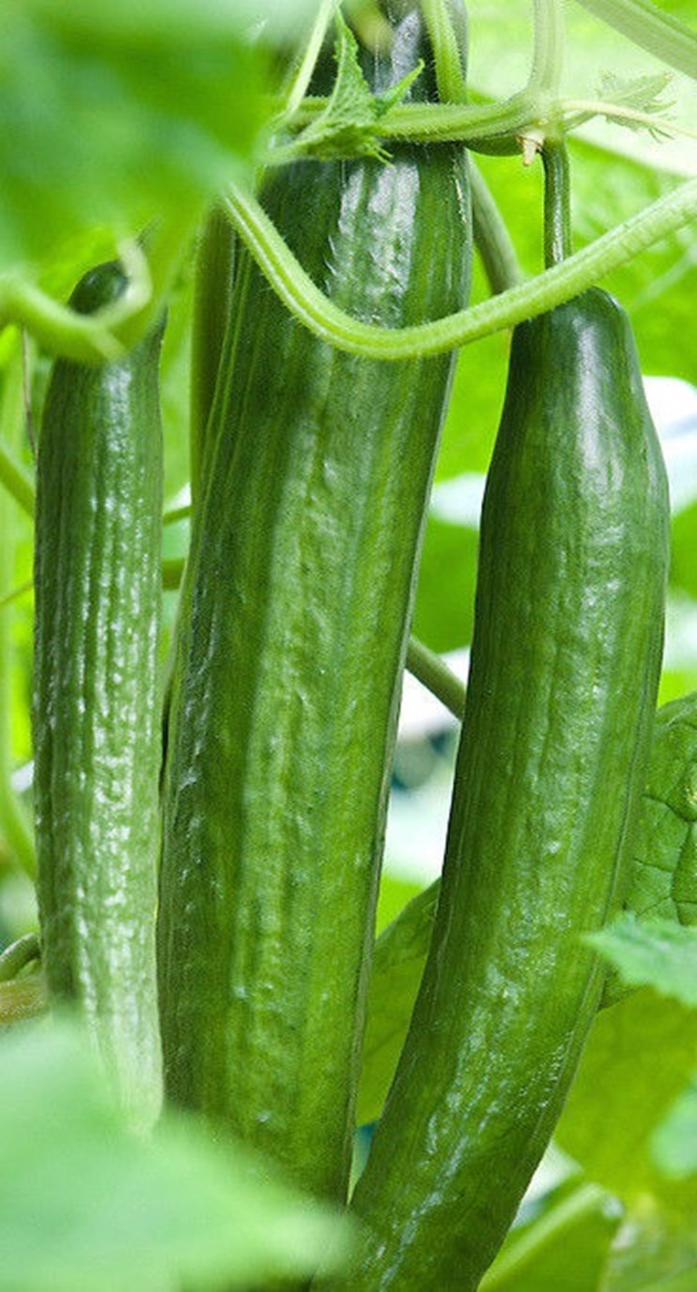 A very productive early maturing F1 hybrid producing cylindrical, very straight fruits, slightly ribby, dark and glossy with a short neck and around 34 - 40cm long with good shelf life. Vigorous growth habit and high resistance to powdery mildew. This is a glasshouse variety and needs good warmth to get the best results.