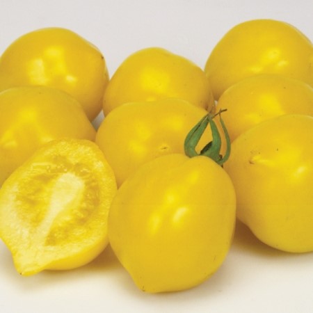 A lemon in both shape and colour. Distinct sharp taste but different and useful for salads. Cordon. 75-80 days from transplanting.