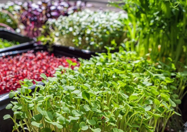 include many of the same leafy greens as those used for salad mixes but are cut at a smaller stage; but also more unique varieties that are chosen for their colour, flavour and texture. They are eaten as thin, delicate plants - as miniature variations on salad greens and herbs. They provide texture and colour when used as garnish, or exciting flavours when used as part of salad mixes. While sprouts are well known for their health benefits they are not as famous for their flavour - Microgreens are both healthy and a taste sensation.
