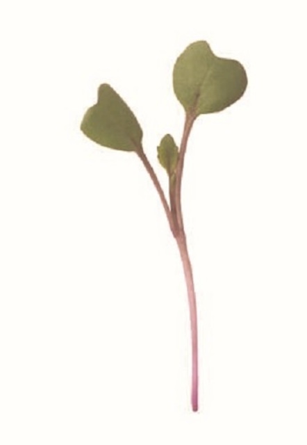 Purple stems and dark-green leaves with a purple tint. Mild cabbage flavor. vg. days to maturity was 16 days when harvested at the first true leaf (as opposed to cotyledon) stage.