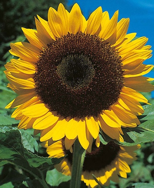 The Black Giant Sunflower has a giant yellow flower head, up to 15″ across with on a single, tall stalk, 12′ ' 15′. The seeds have a high oil content. Great for bird seed mixes.
