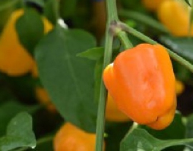 Compact in habit, the plant produces heavy crops of rounded green peppers that mature to a rich orange. Once they start to flower and fruit they just seem to go on all summer long! These are perfect for just about everything - from using in salads, to stuffing, to grilling. Fruits measure around 4-5 cm diameter and have thick walls, giving them a wonderful 'crunch'.