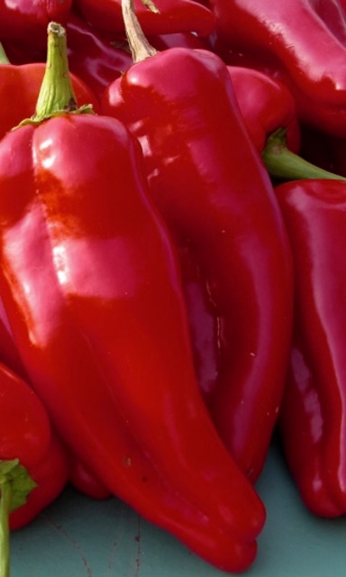 A long, sweet pepper also known as Sweet Spanish Mammoth an heirloom, which dates back to 1859.