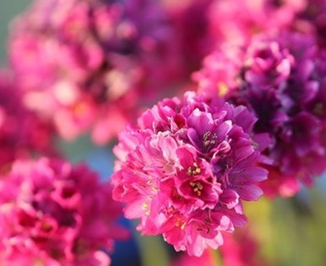 Mounds of grassy green foliage produce 30-45cm long stems with large, round rosy flower heads. Strong stems make them useful as cut flowers.