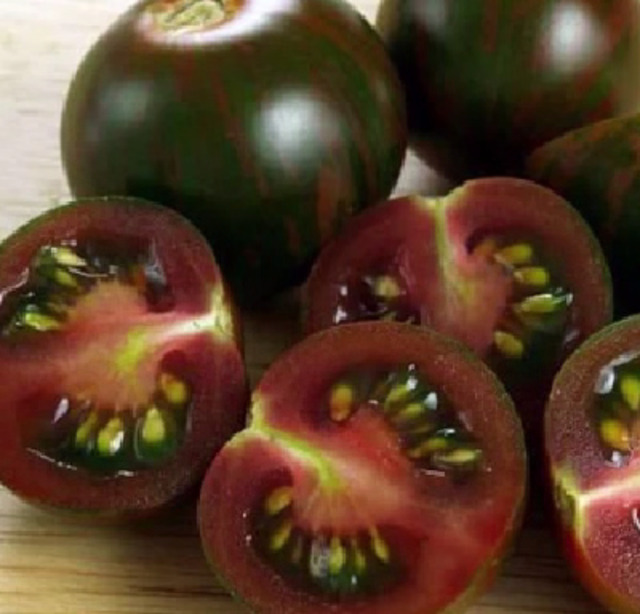 A high variety of tomato, characterized by a continuous type of growth, intended for growing in the ground, at stakes and under covers. The fruits of this tomato are small, have a characteristic purple-brown color. They are sweet and extremely tasty. Ideal for decoration, preserving as a whole, and for direct consumption.