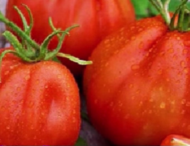An old heirloom tomato that produces plenty of large, pear/sack-shaped, red, slightly ribbed on the shoulder's tomatoes. Meaty and firm flesh, small, sometimes empty seed cavities, ideal for drying or stuffing. Ideal for sauces, coulis, and for drying. Rich and bold flavors with good sweetness. Very productive, vigorous, and strong with good disease resistance. Indeterminant.
