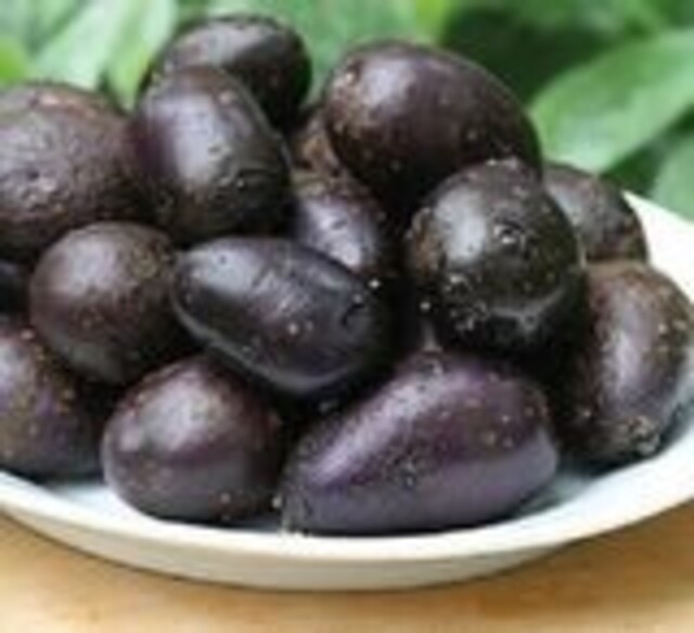 It has the taste and texture of an ordinary variety but boasts vivid purple flesh which retains its color during cooking. High in anthocyanin antioxidants, it's better for you too. Ideal for mashing, baking, roasting and microwaving, as well as making spectacular chips and crisps! Main crop variety.