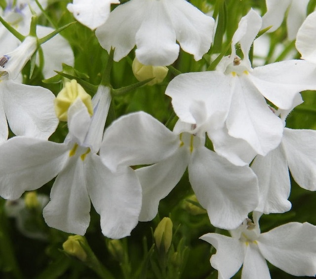 Is a trailing thick bush, compact type of Lobelia with masses of attractive white flowers with a trace of blue, produced throughout the summer. It is ideal for borders, hanging baskets, beds or patio containers.