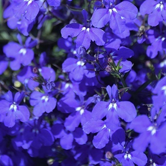 Techno Dark Blue Lobelia is one of the newest in the lobelia range coming through. It is a compact semi-trailing perennial with tiny narrow green foliage. The profuse full tiny blooms of vivid very dark blue flowers with a white mark lasts from spring through summer. Grows best in rich, evenly moist well-drained soil. The Techno quickly fills out and keeps blooming in hot summers. Idea for containers & hanging baskets.