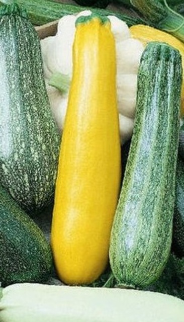 Contains varieties of: Bianco di Trieste Zucchini, Cocozelle Zucchini, Lebanese Zucchini, Banana Italian Striped Traditional Zucchini & Skvorushka Zucchini.