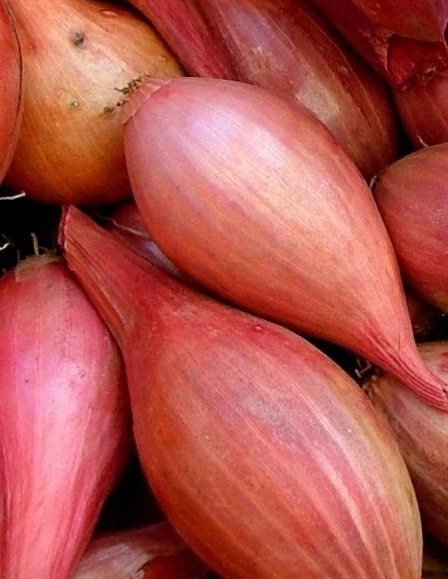 100 days. A good variety for novice shallot-growers, our French Red Shallots are amazingly productive; are easy to peel and to slice and have an intense, spicy flavor. In the summer, when the top greens start to die back, they will yield Shallots the size of chestnuts with coppery russet skins and purple pink flesh. Plus, they store very well.