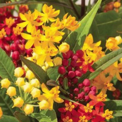Is a vibrant blend of Asclepias curassavica, commonly known as tropical milkweed. Renowned for its role in supporting monarch butterflies and other pollinators, this plant produces clusters of eye-catching flowers in warm shades of red, orange, and yellow. A must-have for butterfly and wildlife gardens, the Silky Formula Mix also adds a bold splash of color to borders and containers.